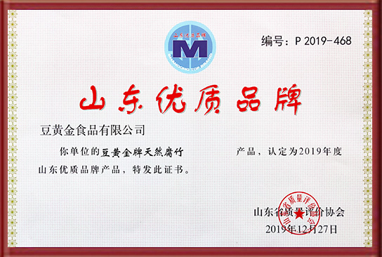 “省級農業(yè)產業(yè)化重點龍頭企業(yè)”、“山東省院士工作站”、“山東省工業(yè)旅游示范點”、“省級扶貧龍頭企業(yè)”、豆黃金”商標被評為“山東省著名商標”。